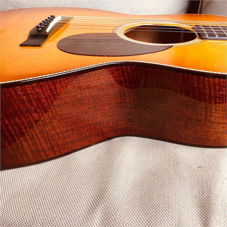 This took about a year to have custom built, using a stash of gorgeous old-growth flamed mahogany. This has "the works", including hot hide glue, Italian spruce top, Adirondack "adi" bracing, gloss finish ($200 upcharge), gloss ...