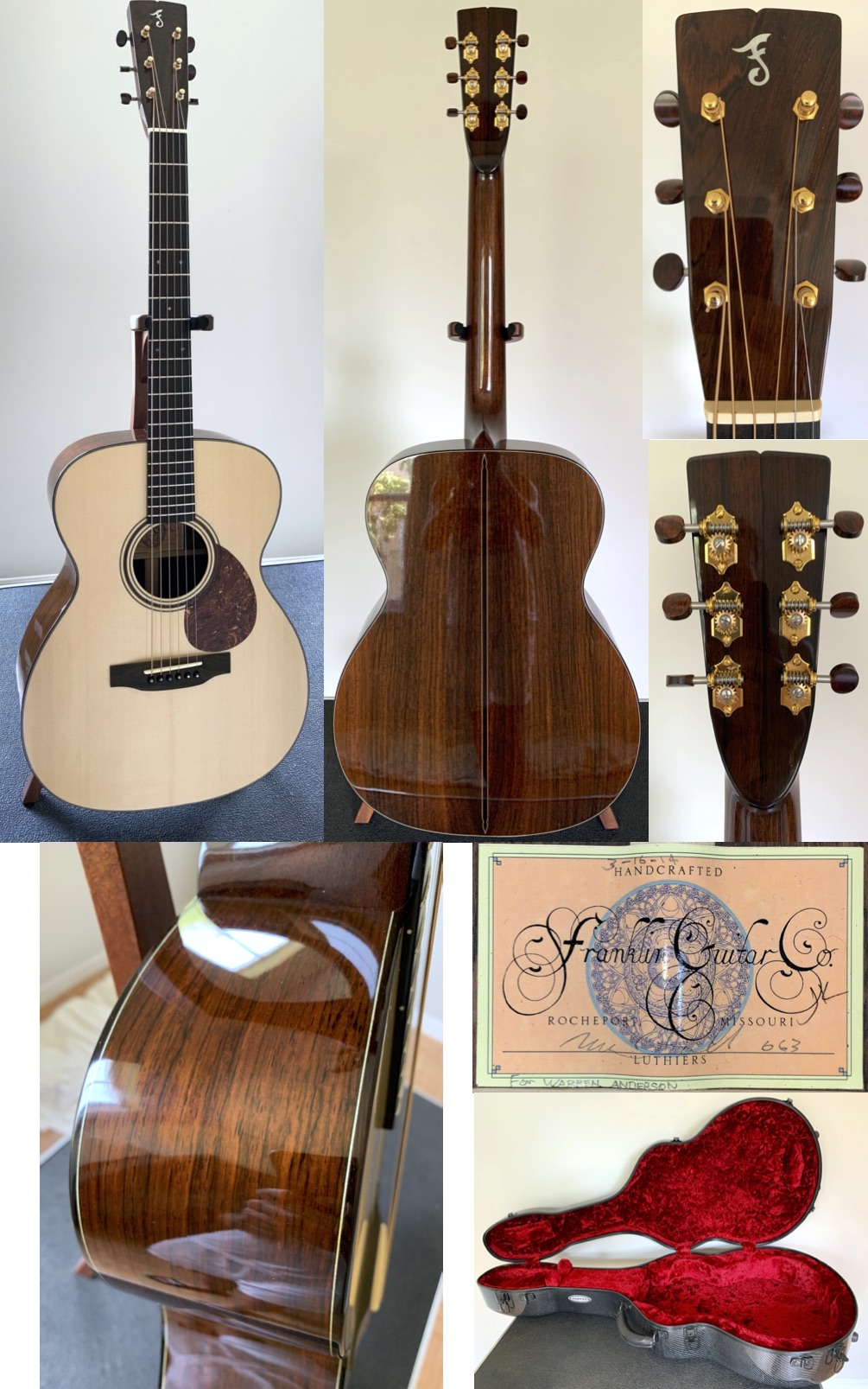 I pack professionally and ship overnight in the continental US. I accept PayPal and do not offer demos or returns unless the instrument and condition are other-than-described, with arbitration by PayPal. I believe Nick Kukich and his Franklin Guitars are consistently and uniformly among the finest pre-War style OMs made today, and this one is an exemplar of his artisanship.