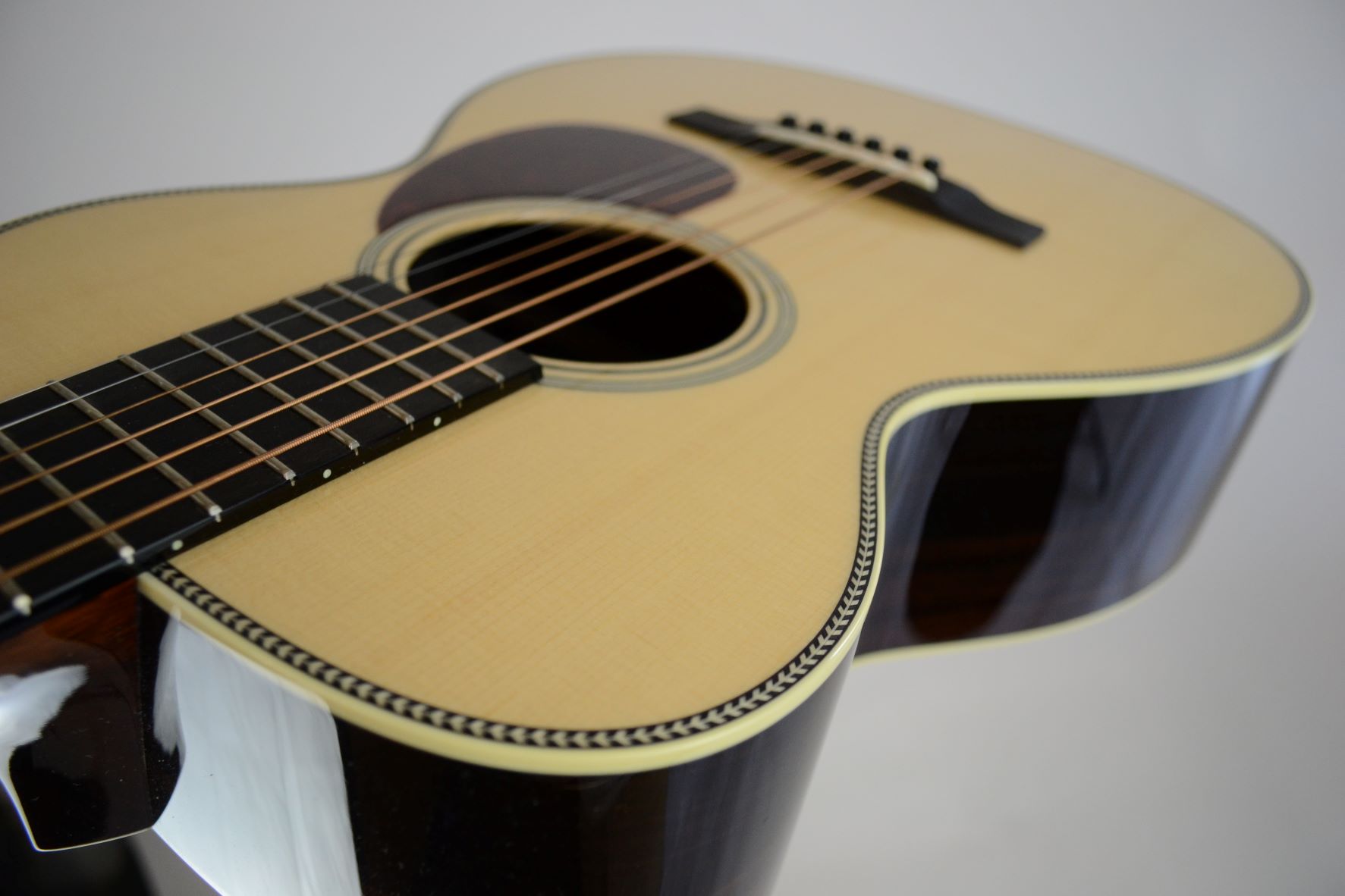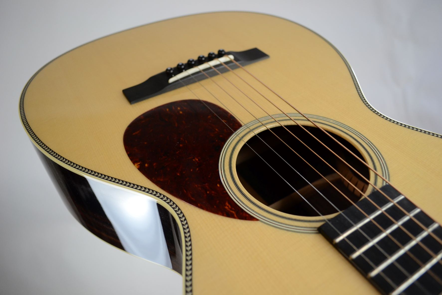 Engleman spruce top, Indian rosewood back and sides, ebony bridge, peghead overlay, and fingerboard.