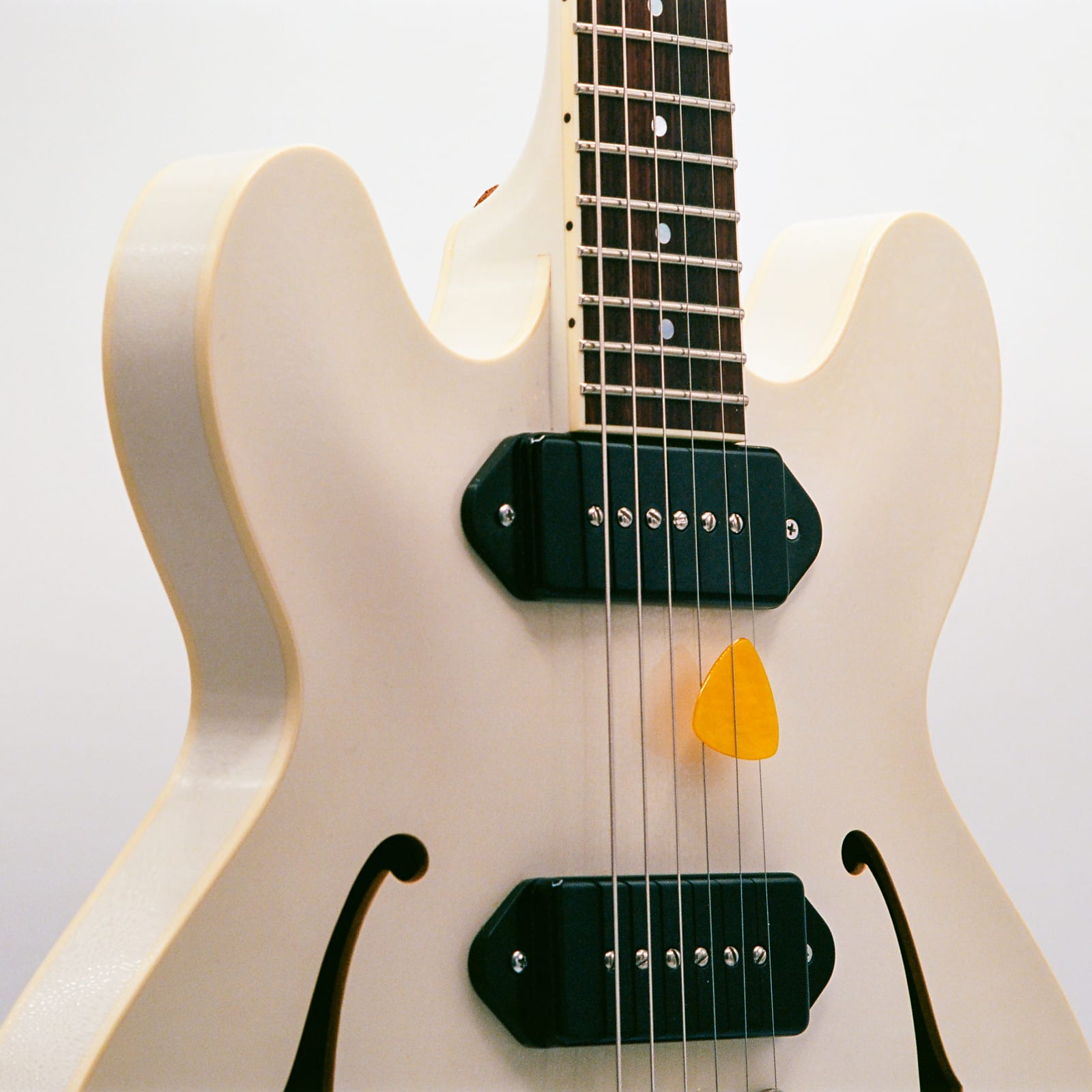 As you can see from the pics, it is in very excellent condition and has been played only a few times. There are pick swirls on the pickguard (of course) but that's about it. The only other thing of note is there are (very light) pinkish stains on the underside of the headstock from a previous owner who must have hung the guitar on a cheap guitar wall hanger. You can not see these discolorations unless you look under the bottom horns of the headstock. See pics. If this is an issue, please don't bid on this guitar. The guitar comes with its original Americase hardshell case.
