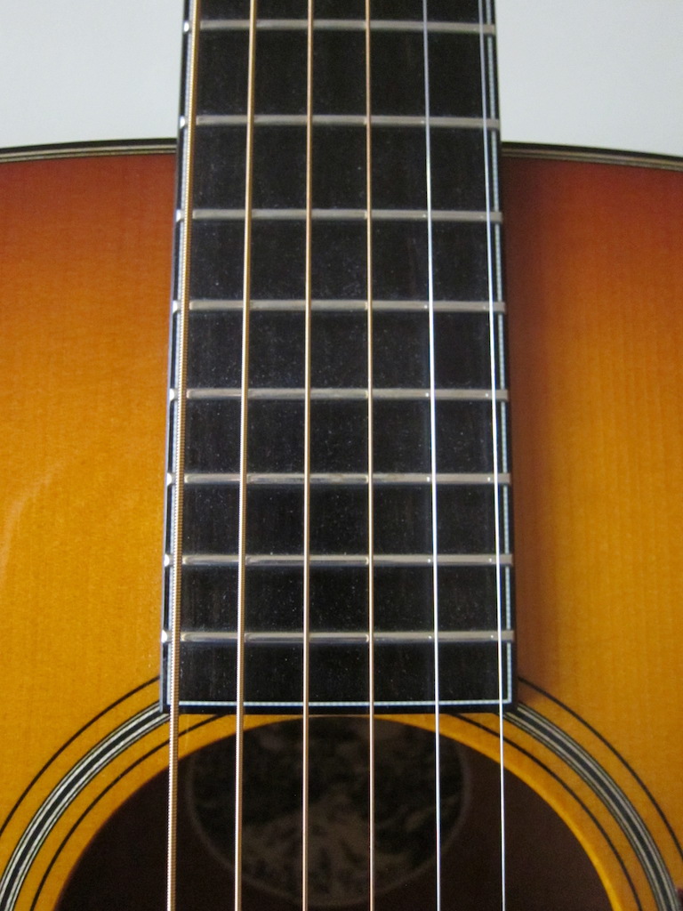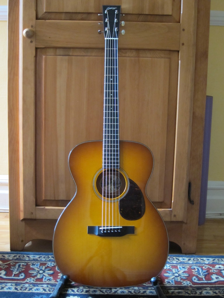This Collings OM1A SB is a spectacular instrument and incredibly clean. It's a great opportunity to save money on a nearly new guitar that is one of the finest OMs you'll find. This is a single owner 2009 OM1A Adirondack Sunburst with 1 3/4" nut width, 2 3/16" at the bridge, and standard Collings V neck profile. Orchestra model with Adirondack top, mahogany back and sides and a beautiful light sunburst. This instrument is in perfect shape and tortoise bound (looks beautiful against the burst). Also has a delicate border inlay around the perimeter of the fretboard and headstock, a subtle upgrade that gives the guitar an extra touch of class. Perfect for flat picking and fingerstyle, this guitar plays easily up the neck and has a sweet full sound. Includes original case and paperwork. $3975.