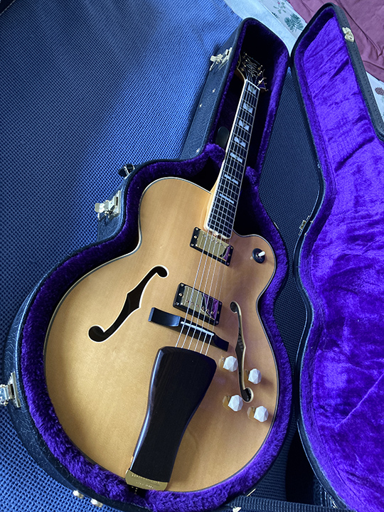 This one is an 'Elitist' model. A hand-made L5 with customization by Kerry Char of Portland, Oregon. Kerry is an expert at restoring unique and antique guitars and is a fine craftsman and luthier.