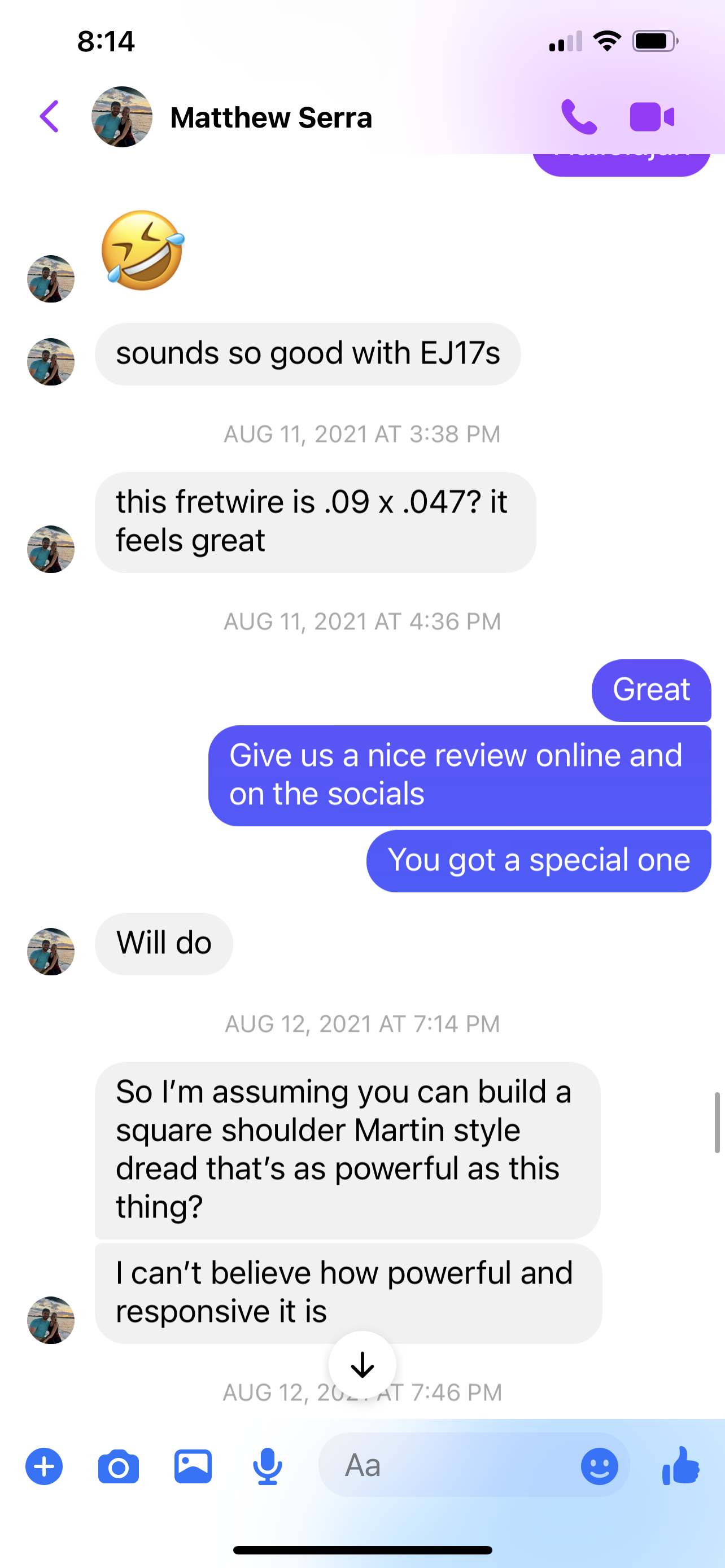 I never said you build bad guitars. Quite the opposite, I'll give credit where it's due and state that you build great guitars. You're just a shady person to deal with, and no one should have to deal with this crap when spending thousands of dollars on an instrument when there are plenty of other builders who provide a polarizing (great) experience. And on that note, this is my last post in this thread because I'm done wasting my time with you.